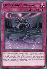 Description: During the Main Phase: You can Tribute 1 Reptile Effect Monster, then target 1 monster in your opponent's GY; Special Summon it to your field, but send it to the GY during the End Phase. You can only use this effect of "Ogdoadic Hollow" once per turn. If this face-up card is sent from the Spell & Trap Zone to the GY: Send all face-up non-Reptile monsters you control to the GY.