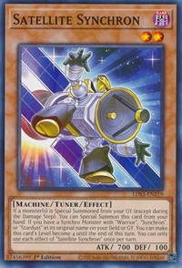 Description: If a monster(s) is Special Summoned from your GY (except during the Damage Step): You can Special Summon this card from your hand. If you have a Synchro Monster with "Warrior", "Synchron", or "Stardust" in its original name on your field or GY: You can make this card's Level become 4 until the end of this turn. You can only use each effect of "Satellite Synchron" once per turn.