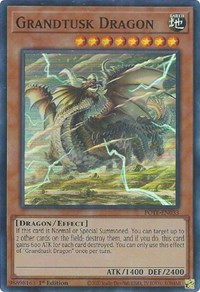 If this card is Normal or Special Summoned: You can target up to 2 other cards on the field; destroy them, and if you do, this card gains 600 ATK for each card destroyed. You can only use this effect of "Grandtusk Dragon" once per turn.