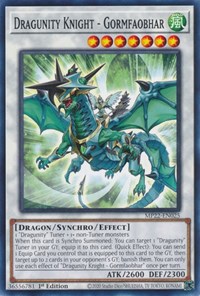 When this card is Synchro Summoned: You can target 1 "Dragunity" Tuner in your GY; equip it to this card. (Quick Effect): You can send 1 Equip Card you control that is equipped to this card to the GY, then target up to 2 cards in your opponent's GY; banish them. You can only use each effect of "Dragunity Knight - Gormfaobhar" once per turn.