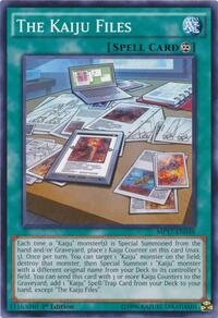 Description: Each time a "Kaiju" monster(s) is Special Summoned from the hand and/or Graveyard, place 1 Kaiju Counter on this card (max. 5). Once per turn: You can target 1 "Kaiju" monster on the field; destroy that monster, then Special Summon 1 "Kaiju" monster with a different original name from your Deck to its controller''s field. You can send this card with 3 or more Kaiju Counters to the Graveyard; add 1 "Kaiju" Spell/Trap Card from your Deck to your hand, except "The Kaiju Files".