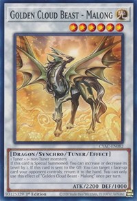 If this card is Special Summoned: You can increase or decrease its Level by 1. If this card is sent to the GY: You can target 1 face-up card your opponent controls; return it to the hand. You can only use this effect of "Golden Cloud Beast - Malong" once per turn.