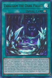 Description: While you control a monster equipped with "Dunnell, the Noble Arms of Light", your opponent cannot activate cards or effects during the Battle Phase. Once per turn, when your "Adventurer Token" destroys an opponent's monster by battle: You can inflict damage to your opponent equal to that destroyed monster's original ATK. Once per turn, during your Main Phase, if the previous effect was activated this turn: You can add 1 Field Spell that mentions "Adventurer Token" from your Deck or GY to your hand, except "Zaralaam the Dark Palace".