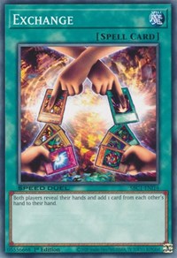Both players reveal their hands and add 1 card from each other's hand to their hand.