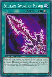 Description: Equip only to a monster you control. If the equipped monster battles an opponent's monster, the equipped monster's original ATK/DEF is doubled during damage calculation only. If you control a monster other than the equipped monster, send this card to the GY. You can only control 1 "Solitary Sword of Poison".