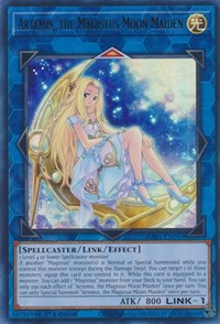 If another "Magistus" monster(s) is Normal or Special Summoned while you control this monster (except during the Damage Step): You can target 1 of those monsters; equip this card you control to it. While this card is equipped to a monster: You can add 1 "Magistus" monster from your Deck to your hand. You can only use each effect of "Artemis, the Magistus Moon Maiden" once per turn. You can only Special Summon "Artemis, the Magistus Moon Maiden" once per turn.