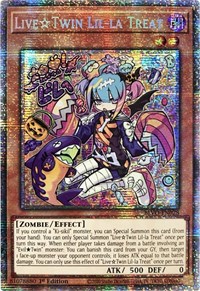 Description: If you control a "Ki-sikil" monster, you can Special Summon this card (from your hand). You can only Special Summon "Live Twin Lil-la Treat" once per turn this way. When either player takes damage from a battle involving an "Evil Twin" monster: You can banish this card from your GY, then target 1 face-up monster your opponent controls; it loses ATK equal to that battle damage. You can only use this effect of "Live Twin Lil-la Treat" once per turn.