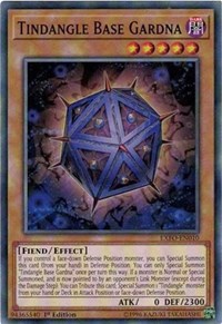 Description: If you control a face-down Defense Position monster, you can Special Summon this card (from your hand) in Defense Position. You can only Special Summon "Tindangle Base Gardna" once per turn this way. If a monster(s) is Normal or Special Summoned, and is now pointed to by an opponent''s Link Monster (except during the Damage Step): You can Tribute this card; Special Summon 1 "Tindangle" monster from your hand or Deck in Attack Position or face-down Defense Position.