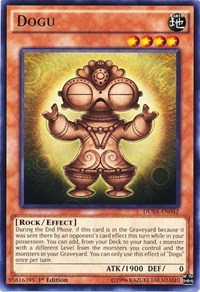 Description: You can only use this effect of "Dogu" once per turn. During the End Phase, if this card is in the Graveyard because it was sent there this turn by your opponent''s card effect: You can add 1 monster from your Deck to your hand that has a different Level from any monsters you control or in your Graveyard.