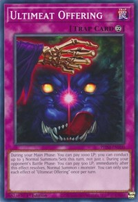Description: During your Main Phase: You can pay 1000 LP; you can conduct up to 3 Normal Summons/Sets this turn, not just 1. During your opponent's Battle Phase: You can pay 500 LP; immediately after this effect resolves, Normal Summon 1 monster. You can only use each effect of "Ultimeat Offering" once per turn.