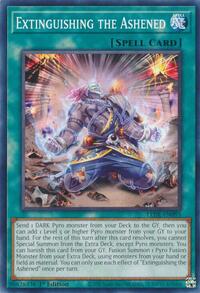 Description: Send 1 DARK Pyro monster from your Deck to the GY, then you can add 1 Level 5 or higher Pyro monster from your GY to your hand. For the rest of this turn after this card resolves, you cannot Special Summon from the Extra Deck, except Pyro monsters. You can banish this card from your GY; Fusion Summon 1 Pyro Fusion Monster from your Extra Deck, using monsters from your hand or field as material. You can only use each effect of "Extinguishing the Ashened" once per turn.