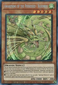 Description: You can Special Summon this card (from your hand or Deck) by sending 1 face-up Spellcaster monster and 1 face-up Level 4 or lower WIND monster you control to the GY. You can only use each of the following effects of "Awakening of the Possessed - Rasenryu" once per turn.