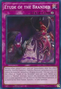 Description: During either player's turn, you can: Immediately after this effect resolves, Synchro Summon 1 Synchro Monster, using monsters you control as material, including a Dragon monster. You can only use this effect of "Etude of the Branded" once per turn. While you control a "Bystial" monster, banish any monsters that would be sent to your opponent's GY as Tributes for their Ritual Summon, or as material for their Fusion, Synchro, or Link Summon.