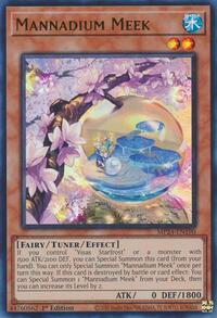 Description: If you control "Visas Starfrost" or a monster with 1500 ATK/2100 DEF, you can Special Summon this card (from your hand). You can only Special Summon "Mannadium Meek" once per turn this way. If this card is destroyed by battle or card effect: You can Special Summon 1 "Mannadium Meek" from your Deck, then you can increase its Level by 2.