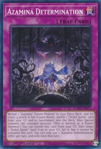 Description: Reveal 1 "Azamina" Fusion Monster in your Extra Deck, and for every 4 Levels it has (round down), shuffle 1 "Sinful Spoils" card from your GY and/or banishment into the Deck, then Special Summon the revealed monster. (This is treated as a Fusion Summon.) You can banish this card from your GY, then target 1 "Sinful Spoils" Spell/Trap in your GY; Set it, but it cannot be activated this turn. You can only use 1 "Azamina Determination" effect per turn, and only once that turn.