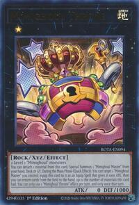 You can detach 1 material from this card; Special Summon 1 "Mimighoul Master" from your hand, Deck or GY. During the Main Phase (Quick Effect): You can target 1 "Mimighoul Master" you control; equip this card to it as an Equip Spell that gives it 1000 ATK, then you can return cards from the field to the hand, up to the number of materials this card had. You can only use 1 "Mimighoul Throne" effect per turn, and only once that turn.