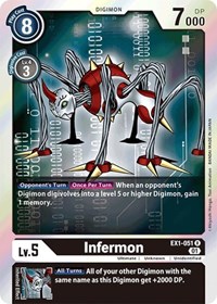 Description: [Opponent's Turn] [Once Per Turn] When an opponent's Digimon digivolves into a level 5 or higher Digimon, gain 1 memory.
