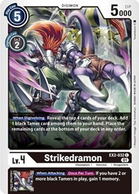 Description: [When Digivolving] Reveal the top 4 cards of your deck. Add 1 black Tamer card among them to your hand. Place the remaining cards at the bottom of your deck in any order.