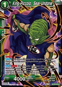 [Auto][Limit 1] If your Leader is a green "King Piccolo" card : When you play a green "Demon Clan" card with an energy cost of 2 or more using a skill, draw 1 card, and add up to 1 card from your life to your hand.