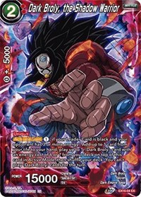 [Activate:Main] 1, if your Leader Card is black and your opponent has 3 or more energy : Add up to 1 card from your life to your hand, play up to 1 "Dark Broly" card with an energy cost of 6 or 7 from your deck on top of this card in Active Mode, then shuffle your deck. You can't play "Dark Broly" cards for the turn.