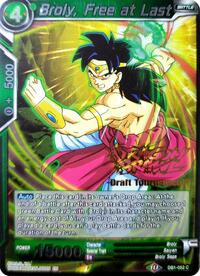 Description: [Auto] Place this card in its owner's Drop Area : At the end of a battle after this card attacked, you may choose 1 green Battle Card with "Broly" in its character name and an energy cost of 6 in your Drop Area and play it. If you played a card, you can't play Battle Cards for the duration of the turn.