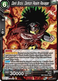 [Activate:Main] (-): If your Leader Card is a "Dark Broly" card and you send 6 black Battle Cards other than this card from your Drop Area to your Warp : Play this card from your Drop Area.