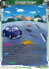 Description: [Permanent] If your opponent's Leader is a green "Cell" and this card is in your Battle Area, your Earthling Tokens can't attack, and you can't use your Earthling Tokens or green "Android 17"/"Android 18" cards with an energy cost of 2 in a combo.