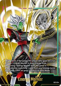 Description: At the start of the game, the player who goes second places 1 Energy Marker in their Energy Area. Removing 1 Energy Marker from the game is equivalent to switching 1 card from your energy (with the same color as your Leader) to Rest Mode.