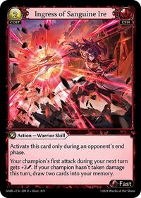 Your champion's first attack during your next turn gets +3 power. If your champion hasn't taken damage this turn, draw two cards into your memory.