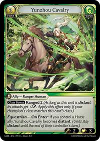 Equestrian — On Enter: If you control a Horse ally, Yunzhou Cavalry becomes distant. (Units stay distant until the end of their controller's turn.)