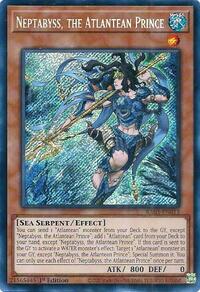 Description: You can send 1 "Atlantean" monster from your Deck to the Graveyard, except "Neptabyss, the Atlantean Prince"; add 1 "Atlantean" card from your Deck to your hand, except "Neptabyss, the Atlantean Prince". If this card is sent to the Graveyard to activate a WATER monster's effect: Target 1 "Atlantean" monster in your Graveyard, except "Neptabyss, the Atlantean Prince"; Special Summon it. You can only use each effect of "Neptabyss, the Atlantean Prince" once per turn.