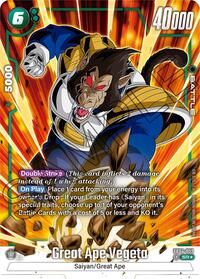 Description: [Double Strike] (This card inflicts 2 damage instead of 1 when attacking.) [On Play] Place 1 card from your energy into its owner's Drop: If your Leader has "Saiyan" in its special traits, choose up to 1 of your opponent's Battle Cards with a cost of 5 or less and KO it.