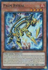 Description: Cannot be Normal Summoned/Set. Must first be Special Summoned (from your hand) by shuffling 1 "Ryzeal" monster from your hand or GY into the Deck/Extra Deck. You cannot Special Summon from the Extra Deck, except Rank 4 Xyz Monsters. Once per turn, during damage calculation, if this card battles an opponent's monster: You can send 1 Level 4 monster from your hand or Deck to the GY, and if you do, this card gains ATK equal to that monster's ATK, until the end of the Battle Phase.