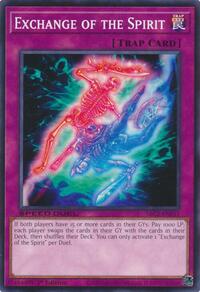 If both players have 15 or more cards in their GYs: Pay 1000 LP; each player swaps the cards in their GY with the cards in their Deck, then shuffles their Deck. You can only activate 1 "Exchange of the Spirit" per Duel.