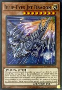 Description: Other cards you control cannot be destroyed by your opponent's card effects. You can only use each of the following effects of "Blue-Eyes Jet Dragon" once per turn, and can only activate them while "Blue-Eyes White Dragon" is on your field or in your GY. If a card(s) on the field is destroyed by battle or card effect: You can Special Summon this card from the GY (if it was there when the card was destroyed) or hand (even if not). At the start of the Damage Step, if this card battles: You can target 1 card your opponent controls; return it to the hand.