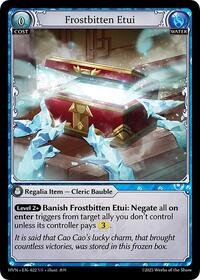 Description: [Level 2+] Banish Frostbitten Etui: Negate all on enter triggers from target ally you don't control unless its controller pays (3).