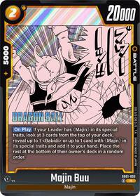 Description: [On Play] If your Leader has "Majin" in its special traits, look at 3 cards from the top of your deck, reveal up to 1 "Babidi" or up to 1 card with "Majin" in its special traits and add it to your hand. Place the rest at the bottom of their owner's deck in a random order.