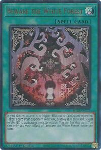 Description: If you control a Level 6 or higher Illusion or Spellcaster monster: Target 1 card your opponent controls; destroy it. If this card is sent to the GY to activate a monster effect: You can Set this card. You can only use each effect of "Beware the White Forest" once per turn.
