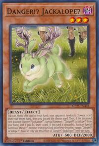 Description: You can reveal this card in your hand; your opponent randomly chooses 1 card from your entire hand, then you discard the chosen card. Then, if the discarded card was not "Danger!? Jackalope?", Special Summon 1 "Danger!? Jackalope?" from your hand, and if you do, draw 1 card. If this card is discarded: You can Special Summon 1 "Danger!" monster from your Deck in Defense Position, except "Danger!? Jackalope?". You can only use this effect of "Danger!? Jackalope?" once per turn.