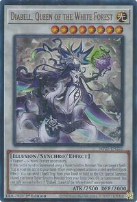 If this card is Synchro Summoned using a Tuner Synchro Monster: You can target 1 Spell/Trap in your GY; add it to your hand. When your opponent activates a card or effect (Quick Effect): You can send 1 Spell/Trap from your hand or field to the GY; Special Summon 1 Level 7 or lower Tuner Synchro Monster from your Extra Deck, GY, or banishment. You can only use each effect of "Diabell, Queen of the White Forest" once per turn.