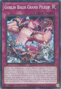 Description: Target 1 Xyz Monster you control; Special Summon 1 "Goblin" Xyz Monster from your Extra Deck, by using that target as material, and if you do, attach this card to it as material. (This is treated as an Xyz Summon. Transfer its materials to the Summoned monster.) You can banish this card from your GY, then target 1 "Goblin" Xyz Monster you control and 1 card in either GY; attach the targeted card from the GY to that monster on the field as material. You can only use each effect of "Goblin Biker Grand Pileup" once per turn.