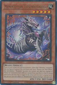 Description: If you do not control any face-up monsters, other than "Memento" monsters: You can Special Summon this card from your hand. During your Main Phase: You can destroy 1 "Memento" monster you control, and send any number of "Memento" monster(s) (with different names) from your Deck to the GY whose total Levels are less than or equal to the destroyed monster's original Level. You can only use each effect of "Mementotlan Tatsunootoshigo" once per turn.