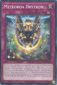 Description: If a "Drytron" card(s) is banished (except during the Damage Step): You can Tribute 1 "Drytron" monster, then target up to 2 of your banished "Drytron" cards; add them to your hand. You can reveal 1 "Meteonis Drytron" in your hand; Ritual Summon 1 Machine Ritual Monster from your hand or GY, by Tributing Machine monsters from your hand or field whose total ATK equals or exceeds its ATK. You can only use each effect of "Meteoroa Drytron" once per turn.