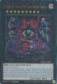 Description: 3 Level 9 monsters You can also Xyz Summon this card by using a "Galaxy-Eyes" Xyz Monster you control as the Xyz Material. (Xyz Materials attached to that monster also become Xyz Materials on this card.) Cannot be used as an Xyz Material for an Xyz Summon. When this card is Xyz Summoned: You can send 3 Dragon-Type monsters with different names from your Deck to the Graveyard; your opponent banishes 3 monsters from their Deck. You can detach 1 Xyz Material from this card; this card can make up to 2 attacks on monsters during each Battle Phase this turn.