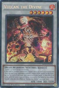 If this card is Synchro Summoned: Target 1 face-up card you control and 1 face-up card your opponent controls; return those targets to the hand, but for the rest of this turn, you cannot activate cards, or the effects of cards, with the same name as those returned to the hand by this effect. You can only use this effect of "Vulcan the Divine" once per turn.