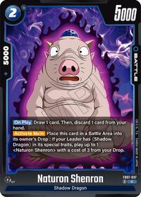 [Activate Main] Place this card in a Battle Area into its owner's Drop : If your Leader had "Shadow Dragon" in its special traits, play up to 1 "Naturon Shenron" with a cost of 3 from your Drop.