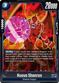 Description: [On Play] If your Leader has "Shadow Dragon" in its special traits, place the top 2 cards of your deck into their owner's Drop. Then, choose up to 1 Battle Card with a cost of 4 or less in your opponent's Battle Area and return it to its owner's hand.