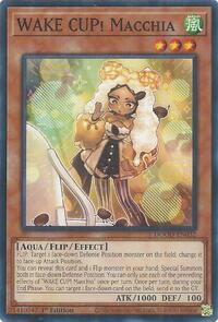 Description: FLIP: Target 1 face-down Defense Position monster on the field; change it to face-up Attack Position. You can reveal this card and 1 Flip monster in your hand; Special Summon both in face-down Defense Position. You can only use each of the preceding effects of "WAKE CUP! Macchia" once per turn. Once per turn, during your End Phase: You can target 1 face-down card on the field; send it to the GY.