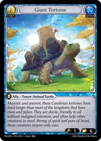Flavor Text: Majestic and ancient, these Cambrian tortoises have lived longer than most of the kingdoms that have risen and fallen. They are docile, friendly to all without maligned intention, and often help other creatures in need. Strong of spirit and pure of heart, these creatures inspire only awe.
