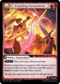 Destroy target item or weapon with memory cost 0 or reserve cost 4 or less. Then its controller puts a sheen counter on a unit they control.